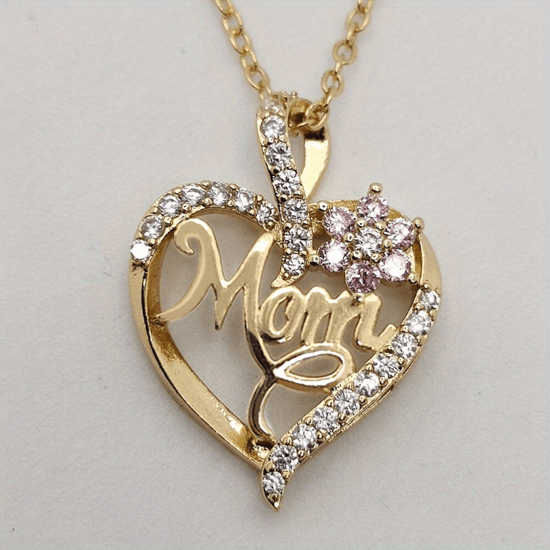 1pc Elegant “Mom” Heart Pendant Necklace with Sparkling Flowers – Golden-Tone Zinc Alloy, Perfect for Birthdays, Anniversaries, and Holidays, Ideal Gift for Moms, Mothers Day Jewelry|Elegant Script Design|Zinc Alloy Necklace, For Teenager