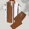 2025 Fall New Minimalist Blue & Black Stripe Pattern Men’s Casual Sportswear Set, Fashionable Half-Zip Pullover Long Sleeve T-Shirt + Comfortable Athletic Pants for Daily Wear, Sports, and Walking
