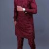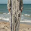 2pcs set, European and American style Men’s casual sports suit, featuring a long-sleeve shirt paired with casual pants, fully printed with glossy geometric patterns and rich embossed motifs. Made of lightweight fabric for a Light Beige-friendly and