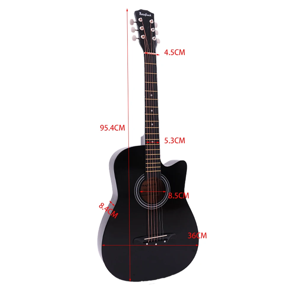This acoustic guitar comes in size of 38/41 inch, suitable for music lover, student and beginner.