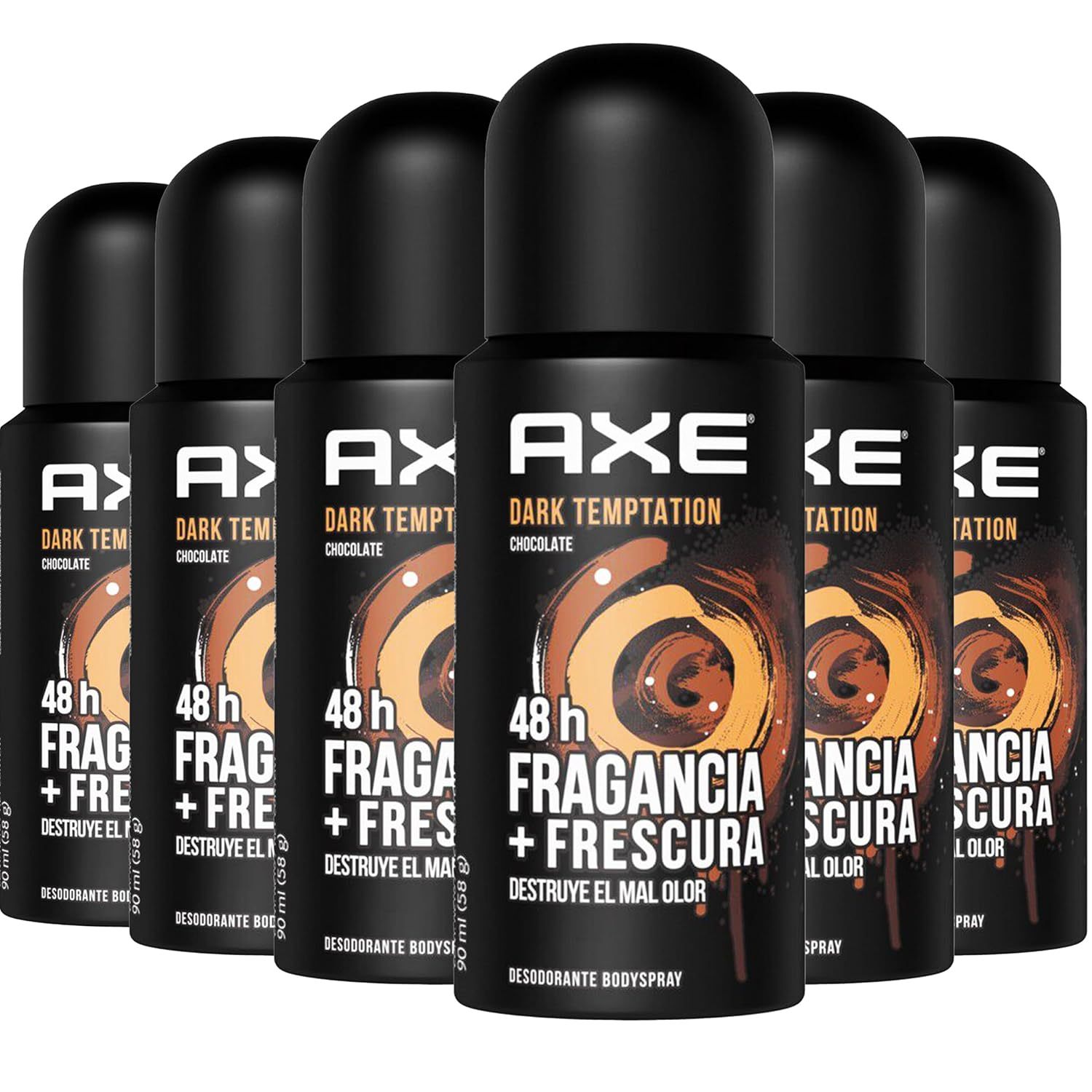 6 Pack Axe Dark Temptation Travel Spray for Men, TSA Approved, Aluminum Free, 48 Hour Odor Protection, Dark Chocolate Scent, Spray, 3 oz Each