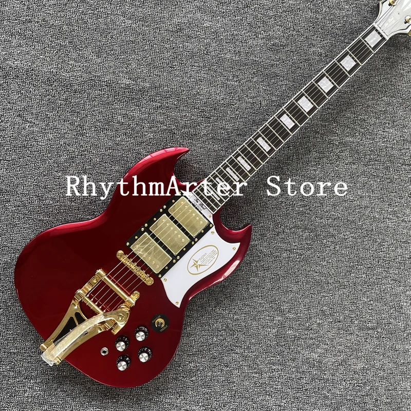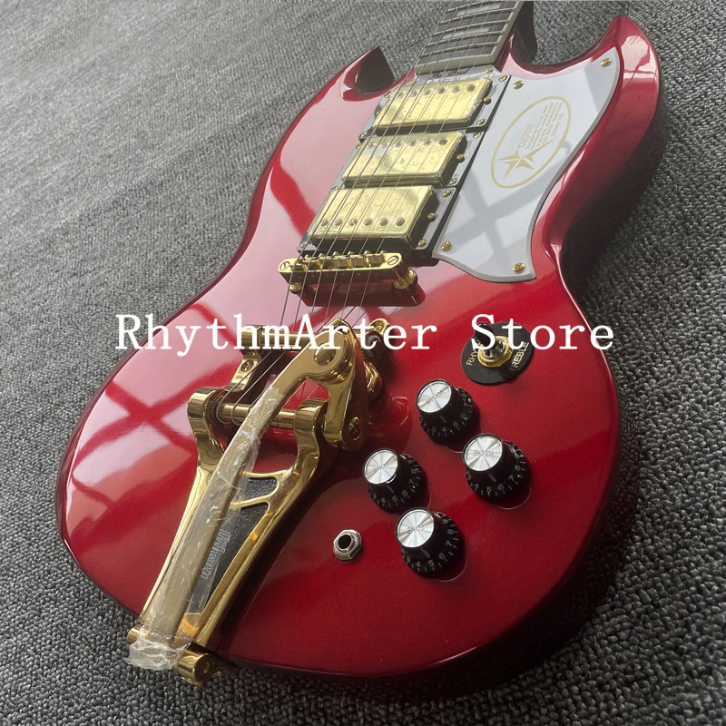 Customized SG guitar, dark red mahogany body, ebony fingerboard, gold color hardware, trill system, three pickup, free shipping
