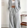 Elegant Women’S Cardigan Button Solid Color Turnover Collar Long Sleeve Long Pants Pajama Set