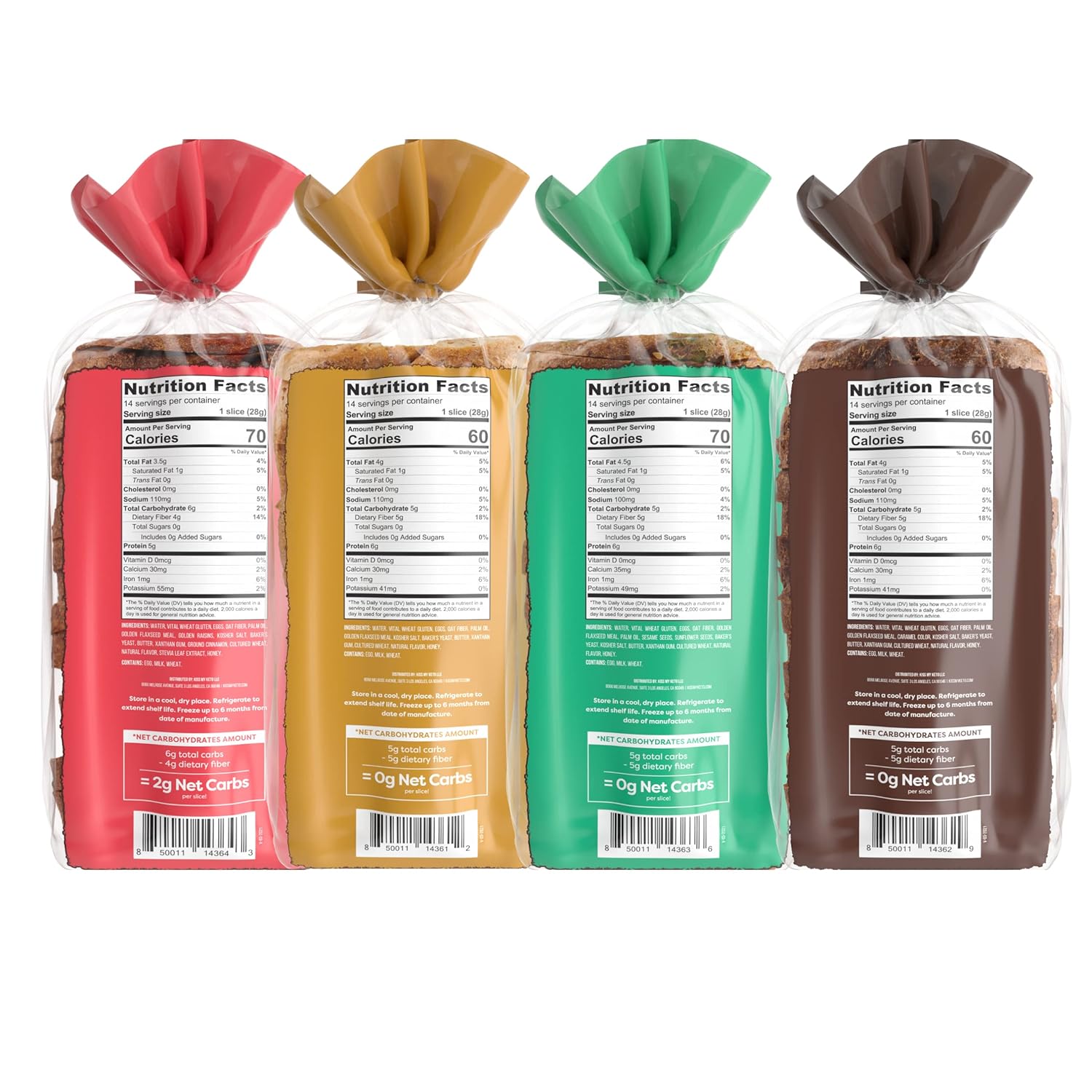 4 Varieties. One Complete Variety Pack – 1x Golden Honey Wheat, 1x Cinnamon Raisin, 1x Dark Wheat & 1x Grain & Seed loaf included in each variety pack. Flavors are now available in single loaf packs.