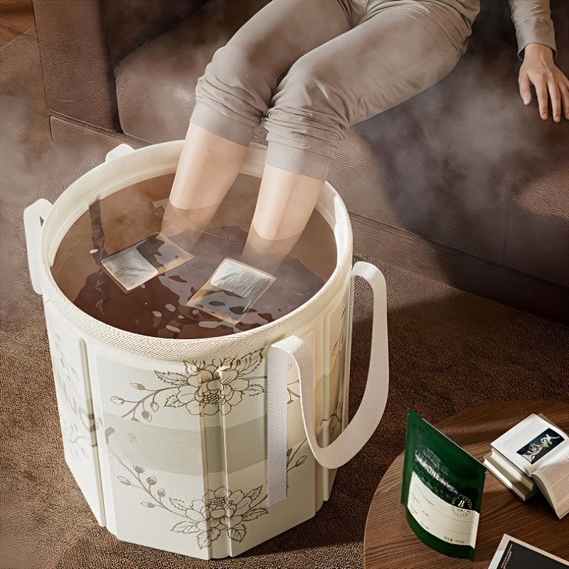 | Color | Flowing Light Golden Foot Bath Tub, Full Garden of Blossoms Foot Soaking Bucket |
