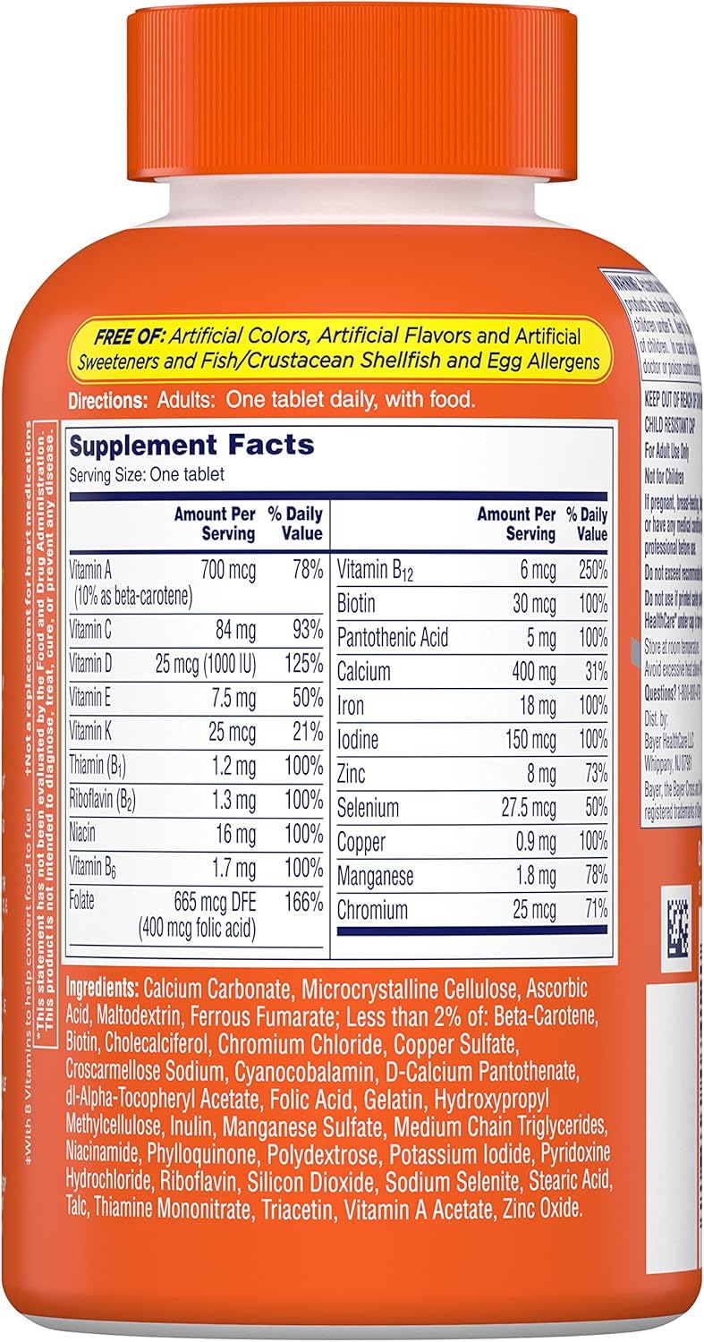 One A Day Women’s Multivitamin is free of gluten, wheat, dairy, artificial flavors, and artificial sweeteners