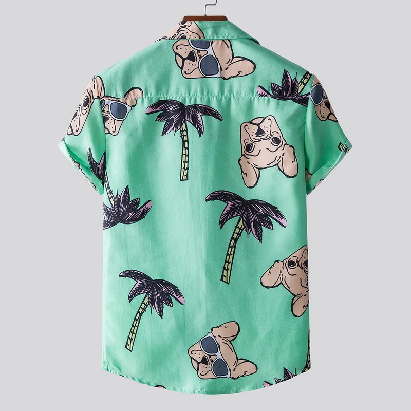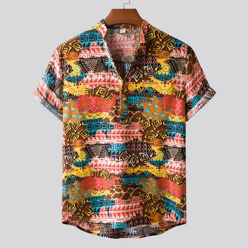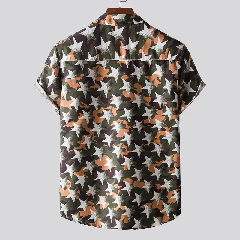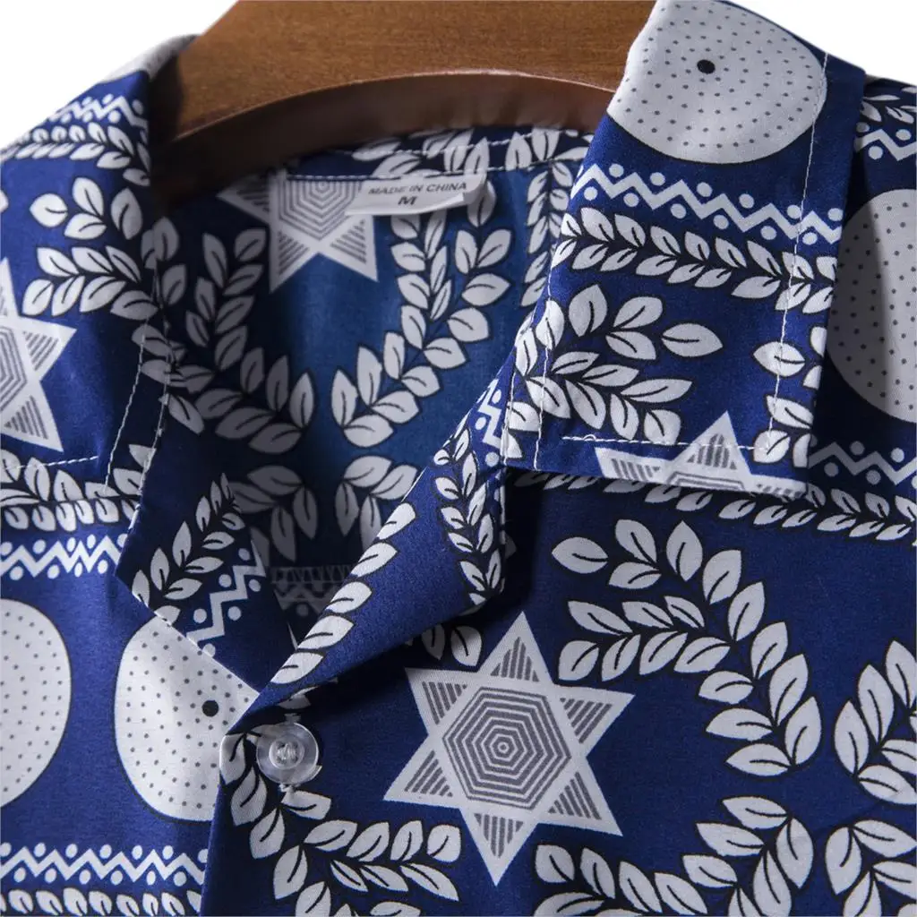 Features:Men’s fashion printed Lapel short sleeve casual loose Floral Shirt