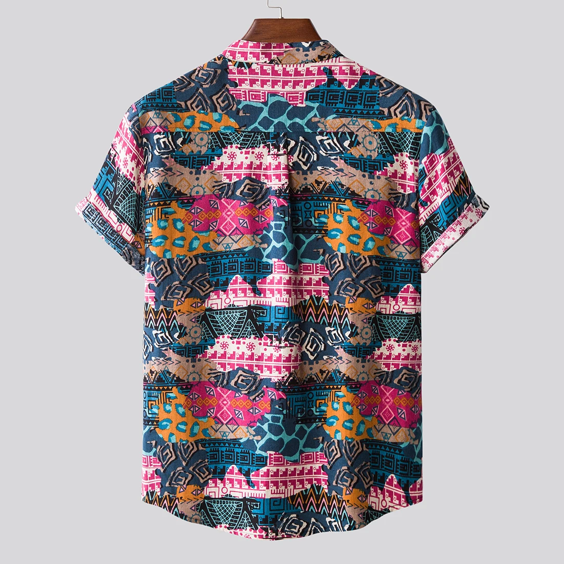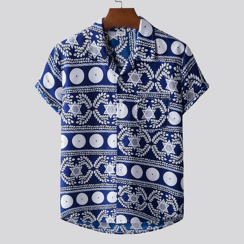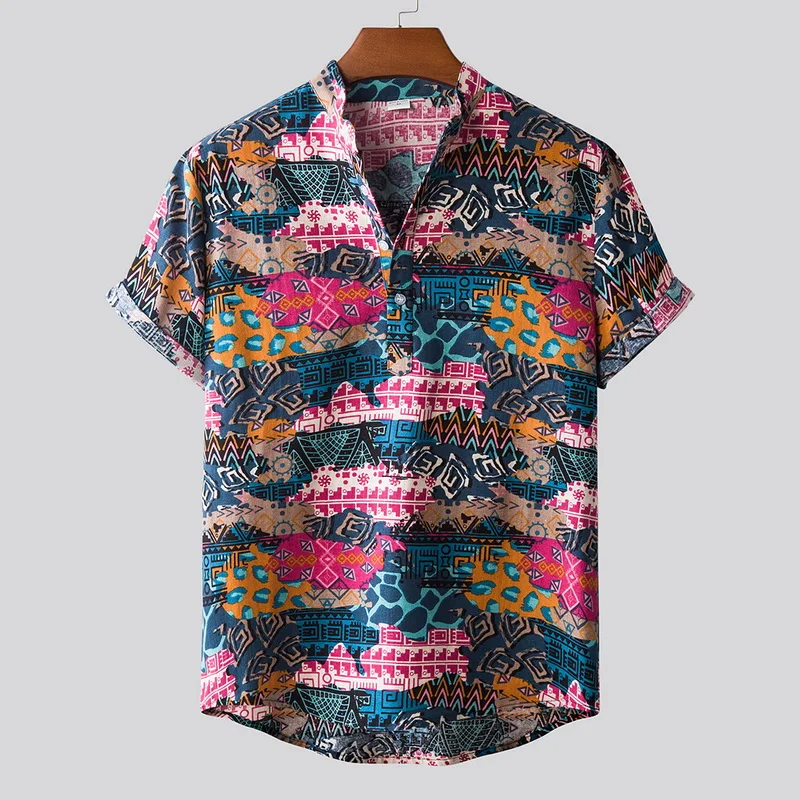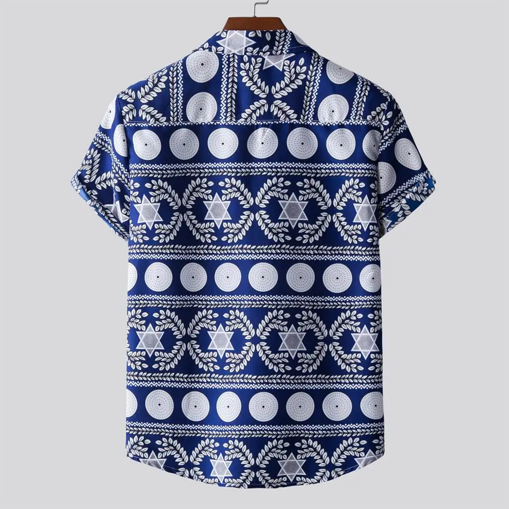 Features:Men’s fashion printed Lapel short sleeve casual loose Floral Shirt
