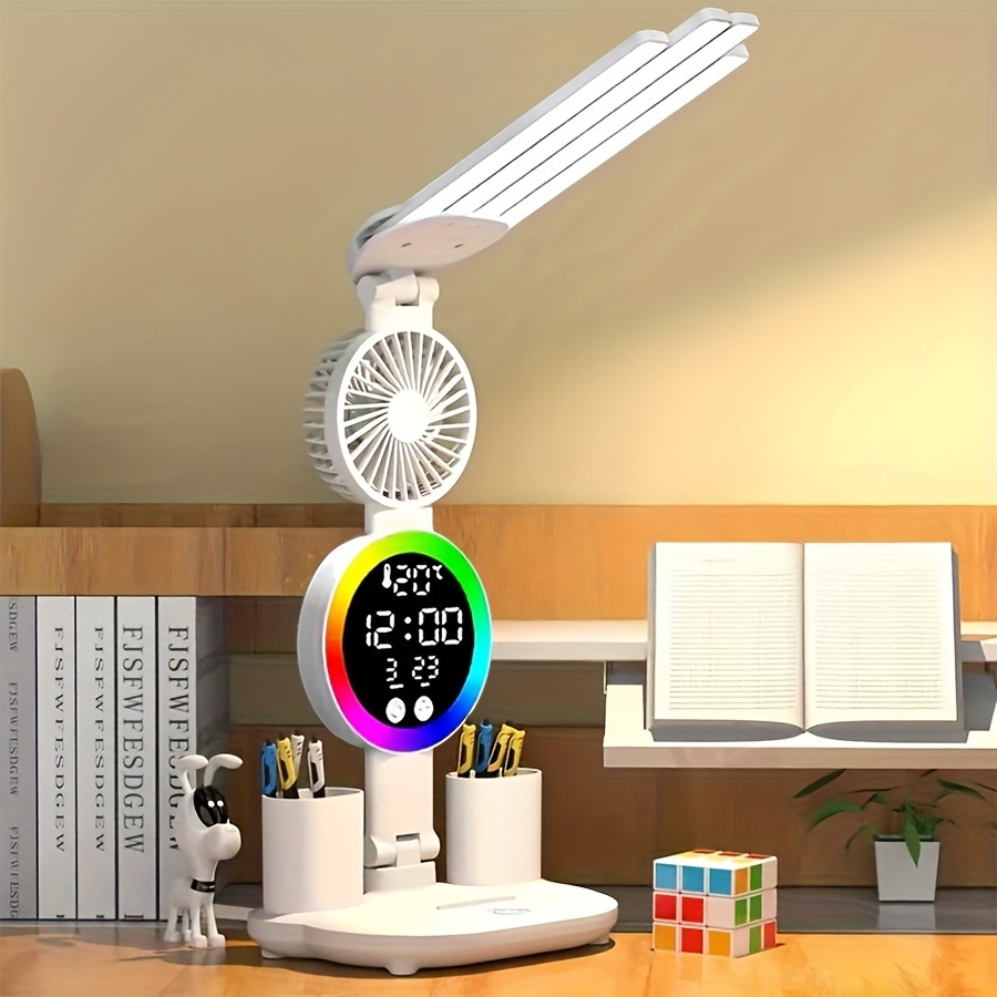 Smart Touch LED Desk Lamp with USB - Dual Head, Dimmable And Color Changing Reading Lamp, Built-in Fan And Night Light, Eye Protection Design, Great for Home Office And Dormitory Study
