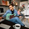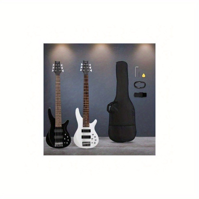 White Electric Bass Guitar with 44 Inch GIB, 6 Strings, H-H Pickups, Laurel Wood Fingerboard, And Included Bag And Accessories
