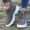 Women'S Snow Boots-Gray/Red/Black, PU Cover Upper With Fleece Lining, Non-Slip Rubber Sole, Lace-Up Design For Outdoor Winter Footwear, Winter Boots faux fur Lined Warm Ankle Boot Winter Outdoor Sports Walking Travel Casual Shoes